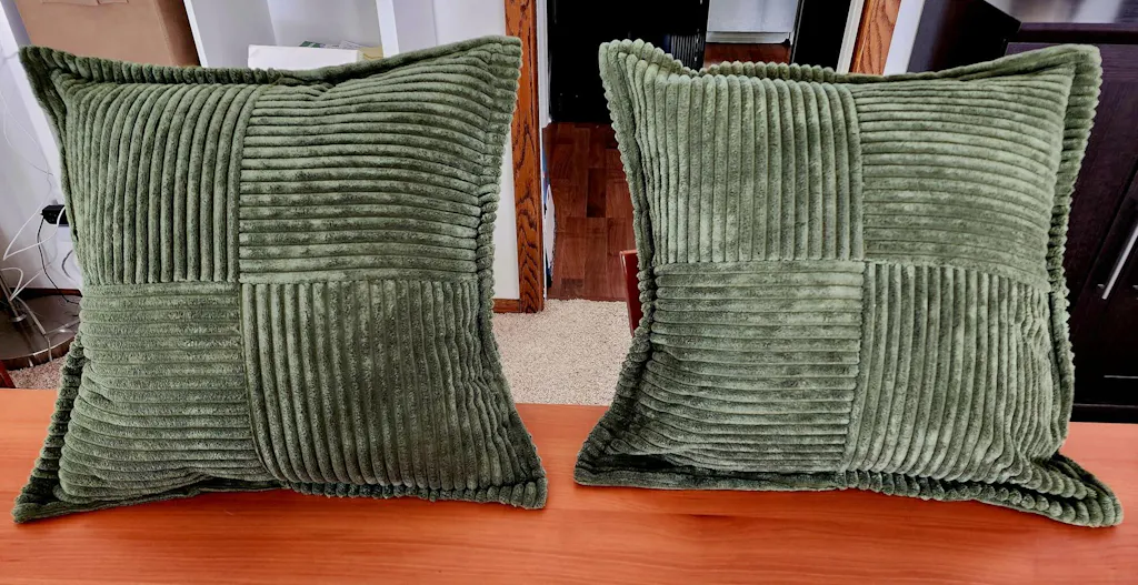 I ended up getting three pairs of these, in different colors. They are very cozy feeling, the zippers are well hidden, and the pattern jazzes up the solid colors. I wanted firm support for the ones on the couch, so I followed advice from some reviews and got the 20" filler pillows, then I got 18" fillers for a few. The 20" are much firmer, the 18" flexible, attaching a pic, the one on the right is the 18".